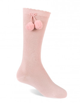 Quick view 1 Calcetines alto con dos borlones colgados Price €9.50 Blanco Marino Celeste Rosa Rojo Vino Antico Cava Topo Add to cart